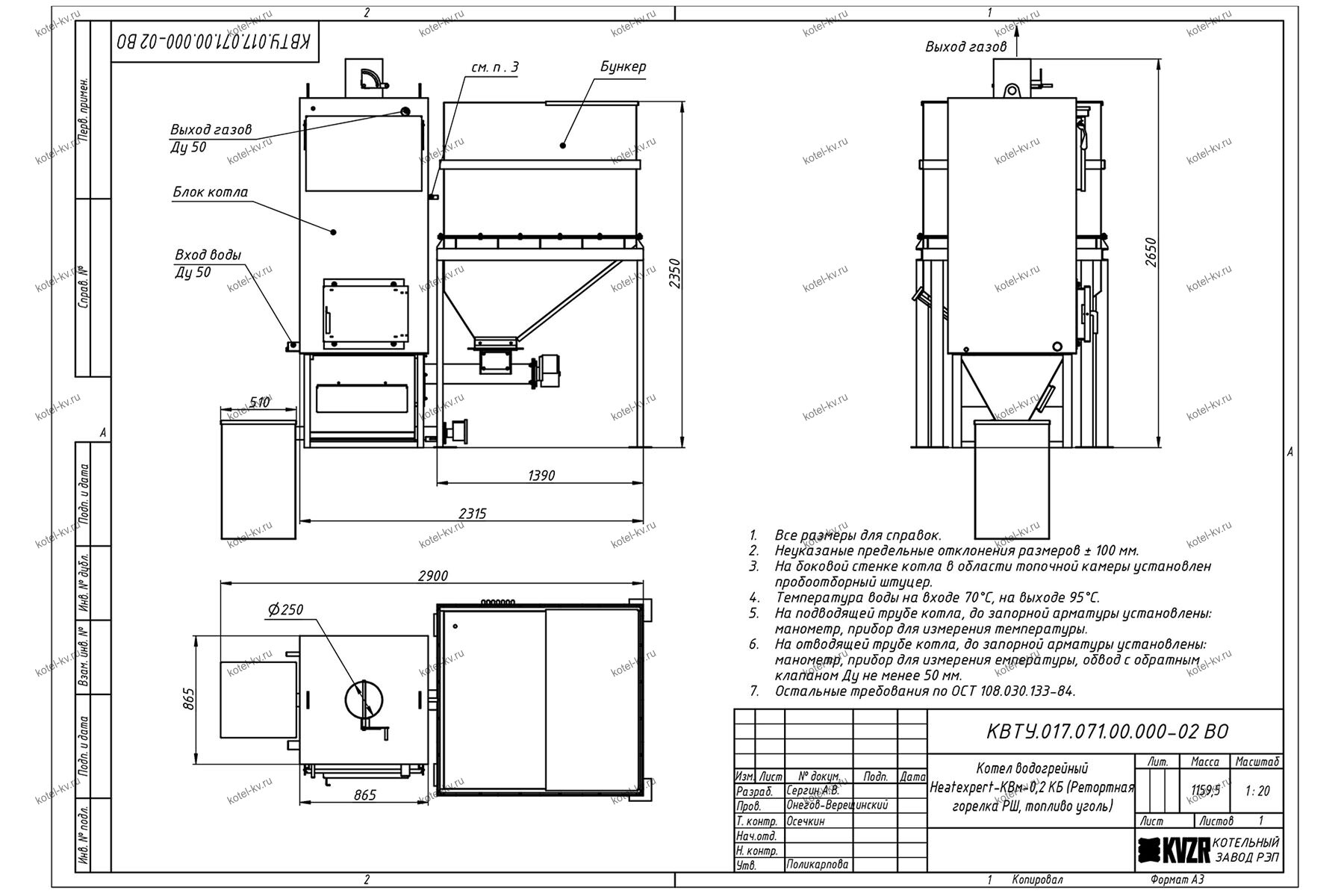 Угольный котел 200 кВт с автоматической подачей конструктивно состоит из следующих блоков: