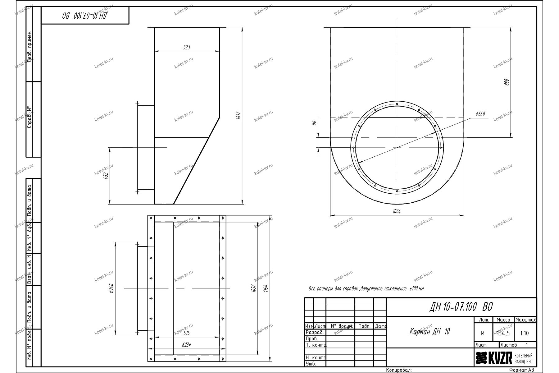 Всасывающий карман ДН 10 - металлическое устройство, которое устанавливается перед тягодутьевыми машинами (например, дымососами и вентиляторами) для защиты оборудования от попадания крупных частиц, посторонних предметов и мусора из потока газов или воздуха. Работает по принципу гравитации: тяжелые частицы оседают на дне кармана, снижая риск их попадания в вентилятор и повреждения механизма.